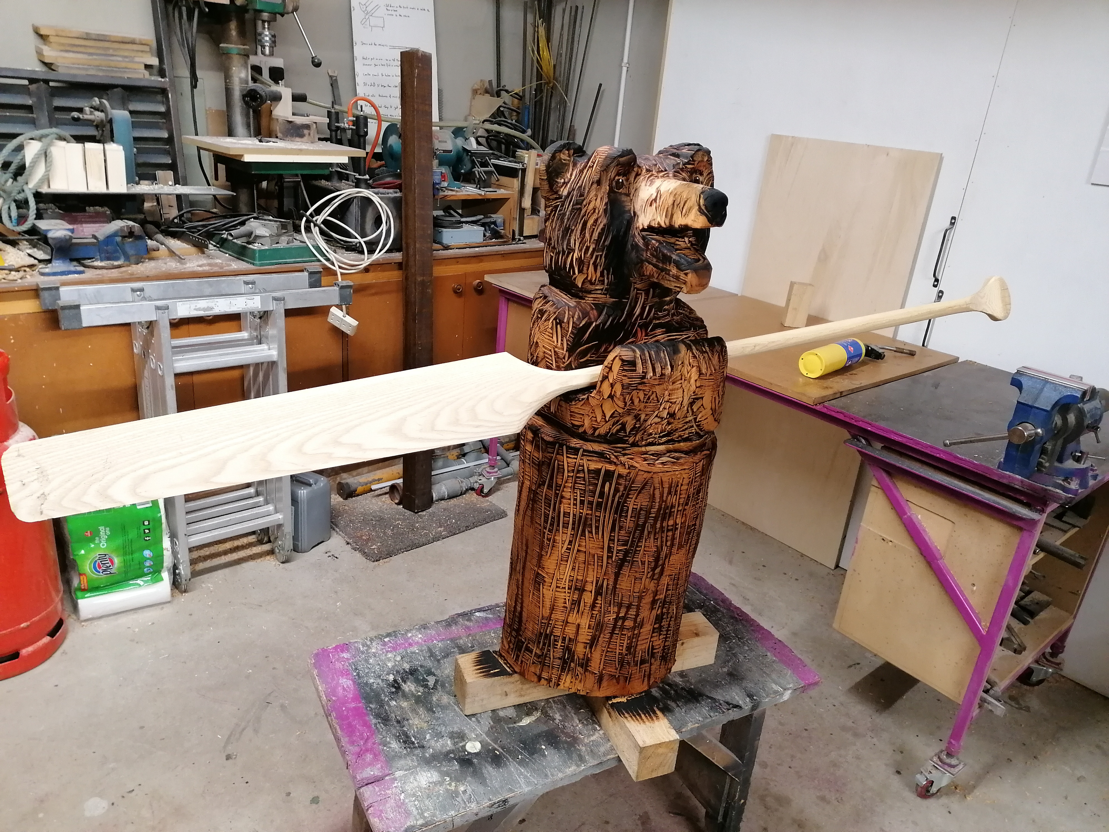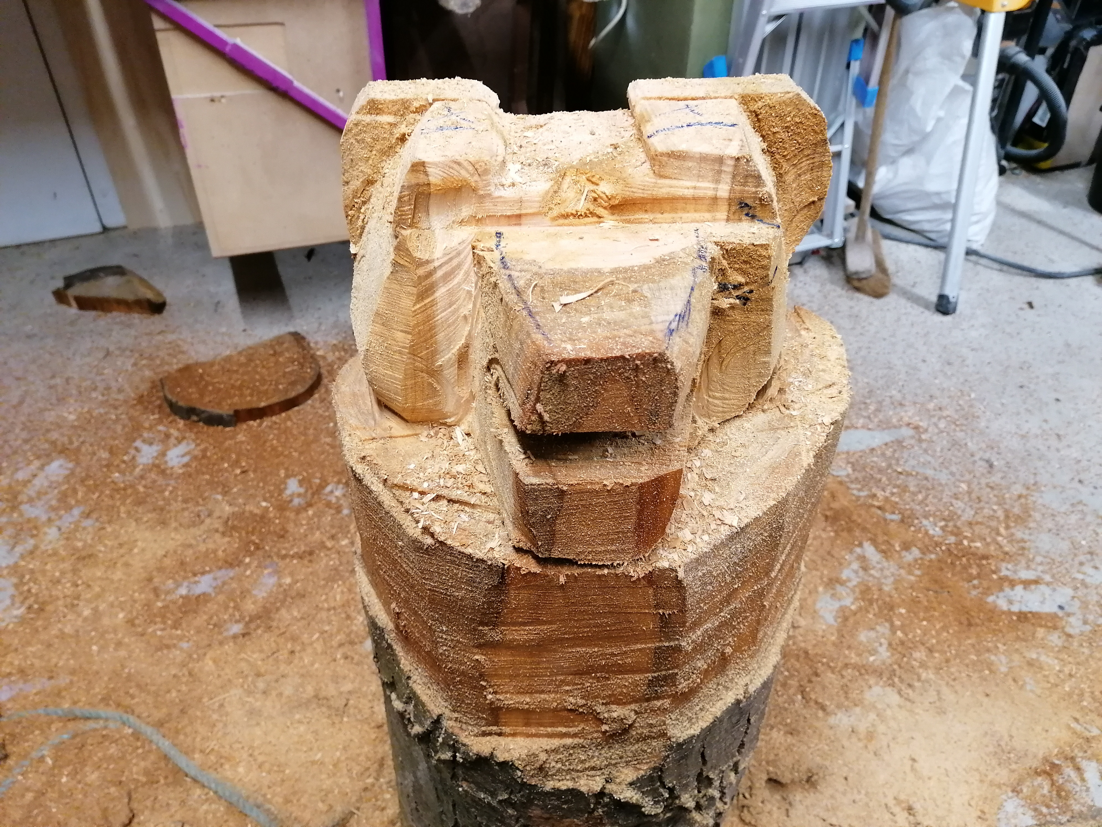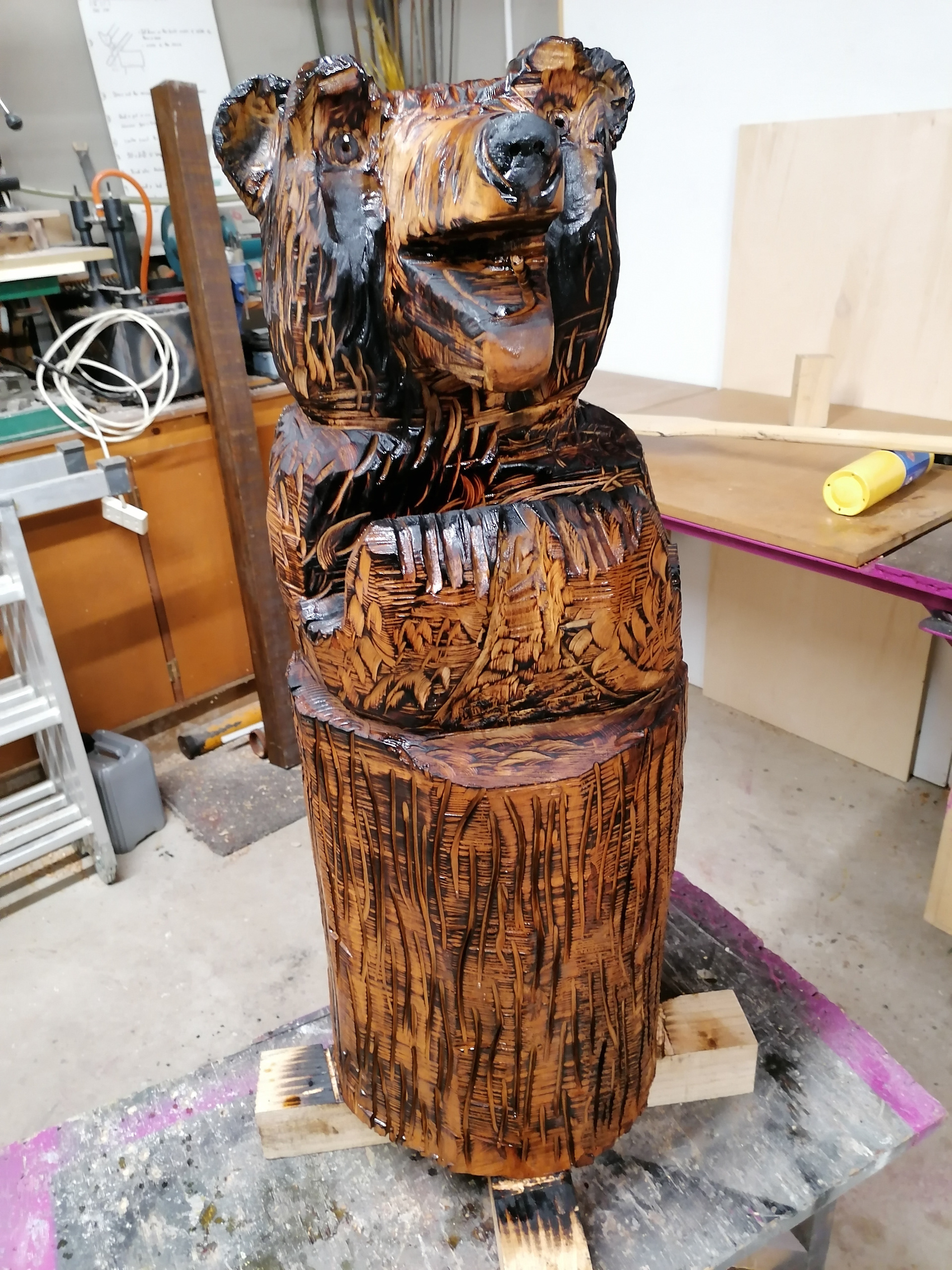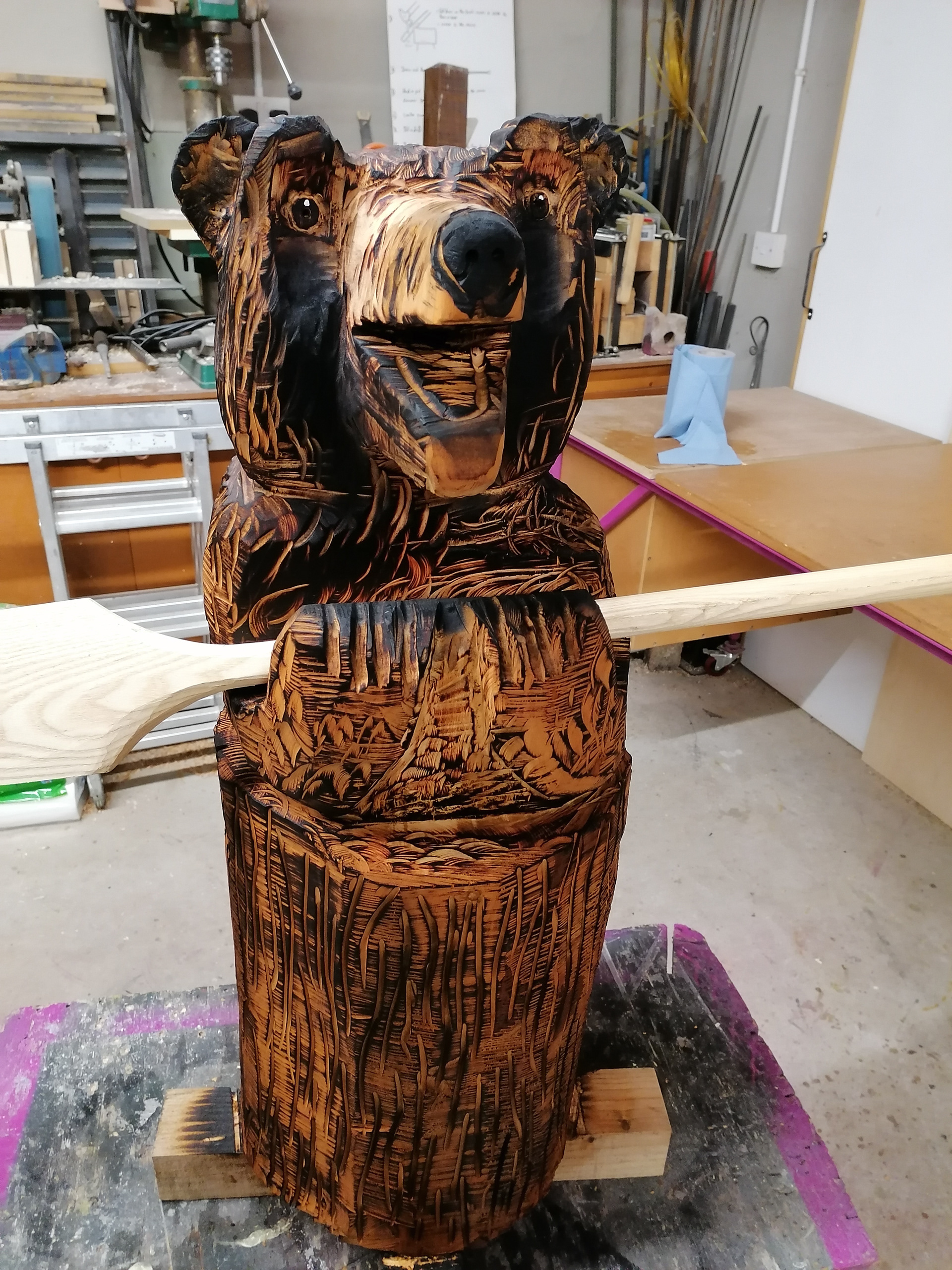 Sadly I lost some of my photos and videos of me carving this wee happy bear. Below are just a few photo of the wee chap who welcomes all to come to visit.