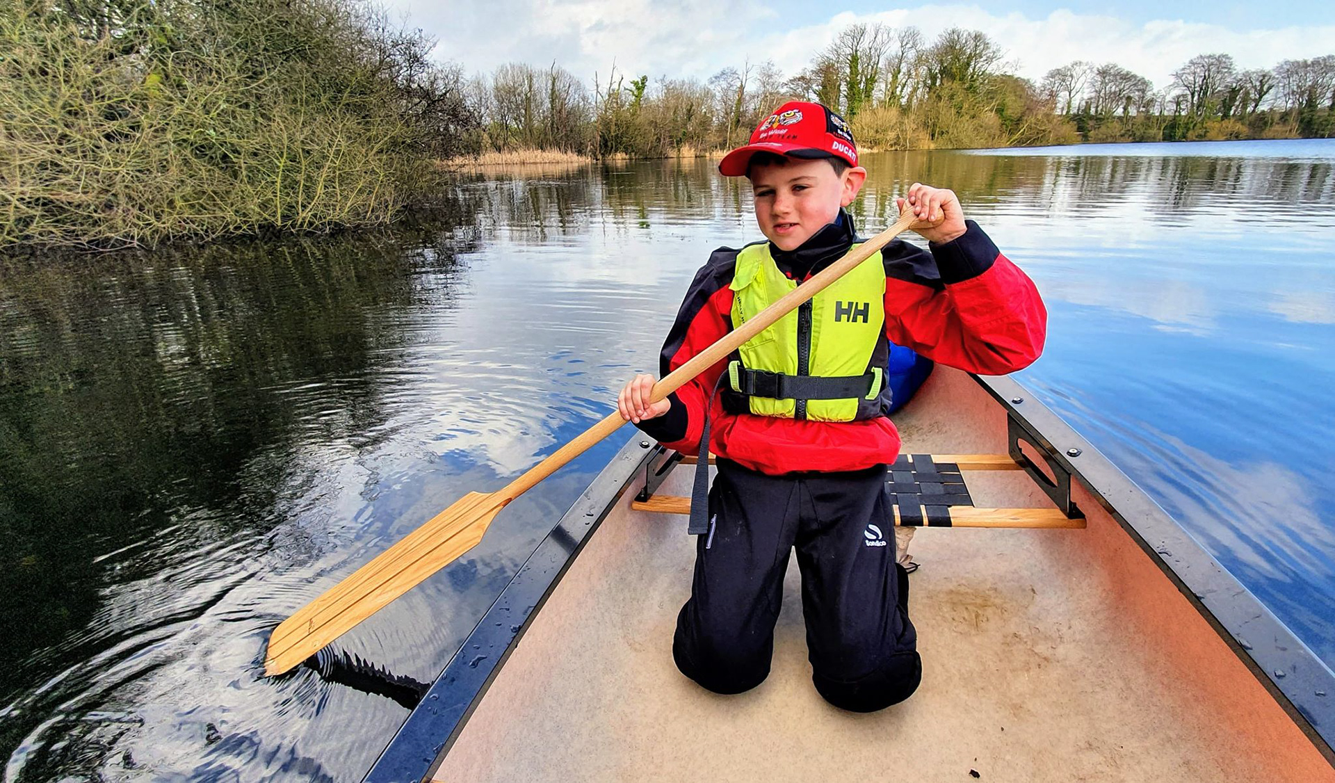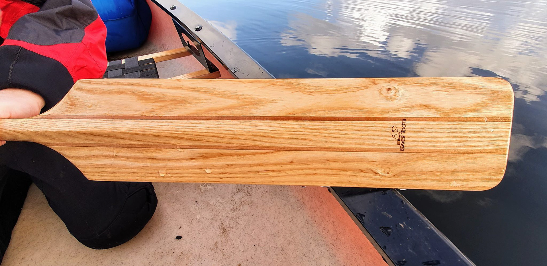 Beaver Tooth's youngest customer needing a custom build paddle so he can develop his paddling skill. This junior paddle is all done by hand with a spine carved along the centre of the blade section for strength while making the paddle light and easy for a junior to handle and not loose interest.